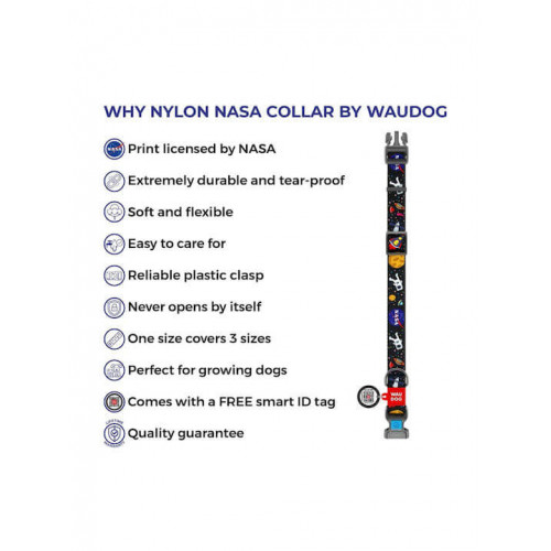 Collar para perros WAUDOG NASA – Nylon con código QR, talla M (20 mm x 28–40 cm)